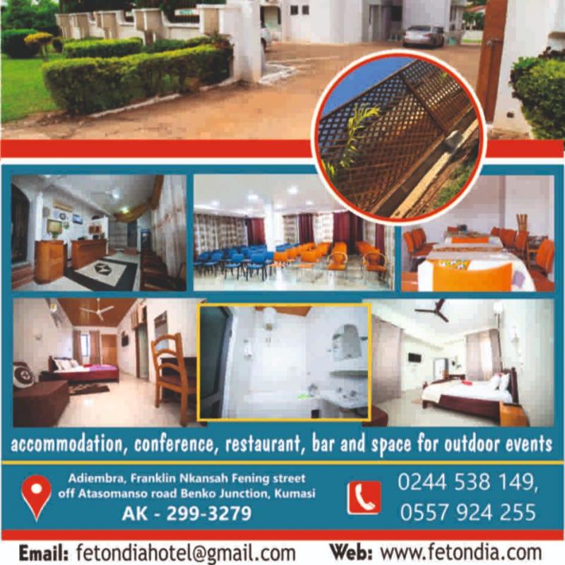 Accommodation, Conference Hall, Restaurant and Open Space for Outdoor Events Location: Adiemra Kumasi, Franklin Nkansah Fenin Street, off Adiemra-Atasemanso road, Benko Junction Digital Address: AK-299-3279